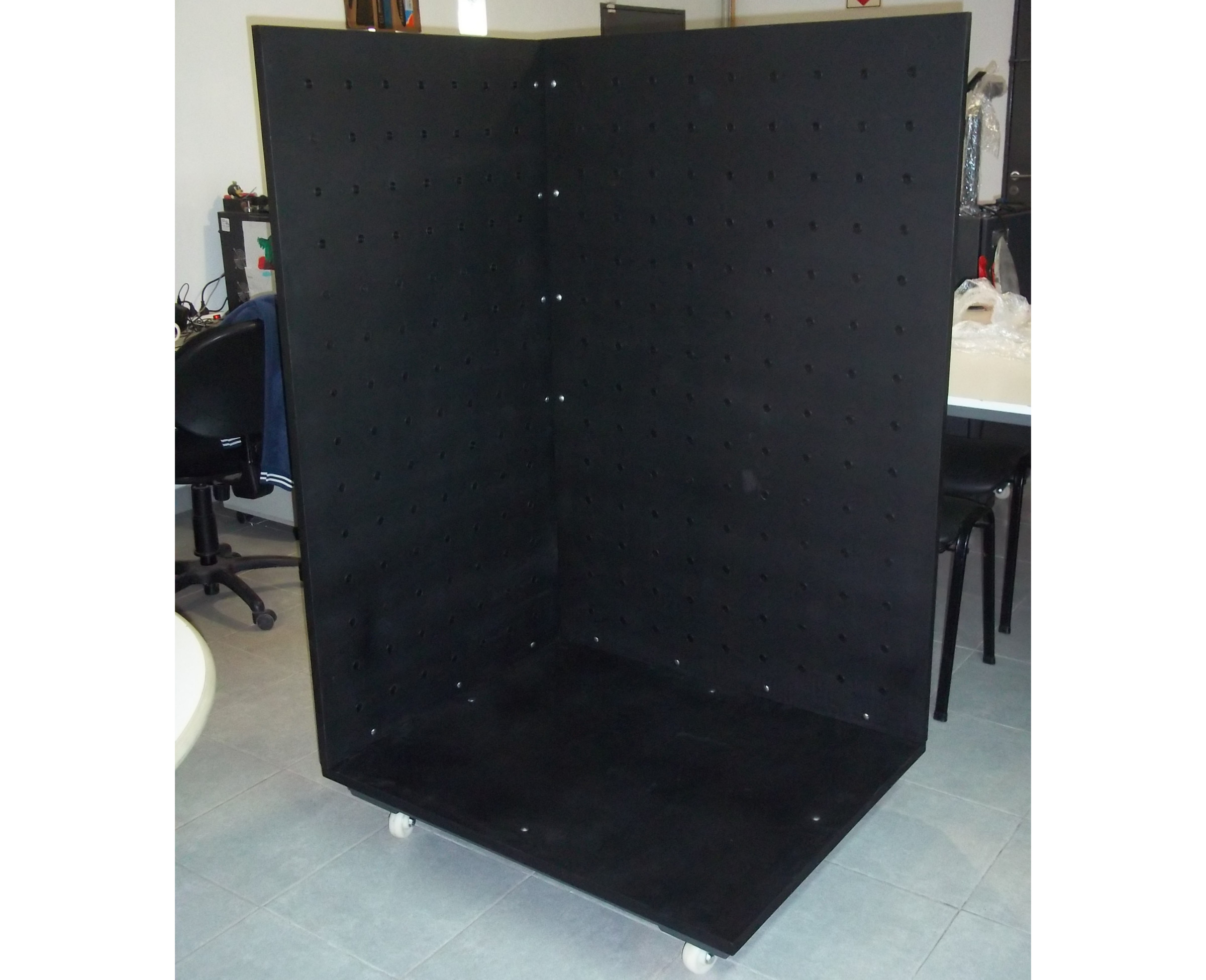 The Black Test Corner from SECOM, is conformed by a trihedral one of black painting plywood, with a matrix of holes each 100 mm that allow to adapt thermocouples of measurement easily, specially designed for such case.