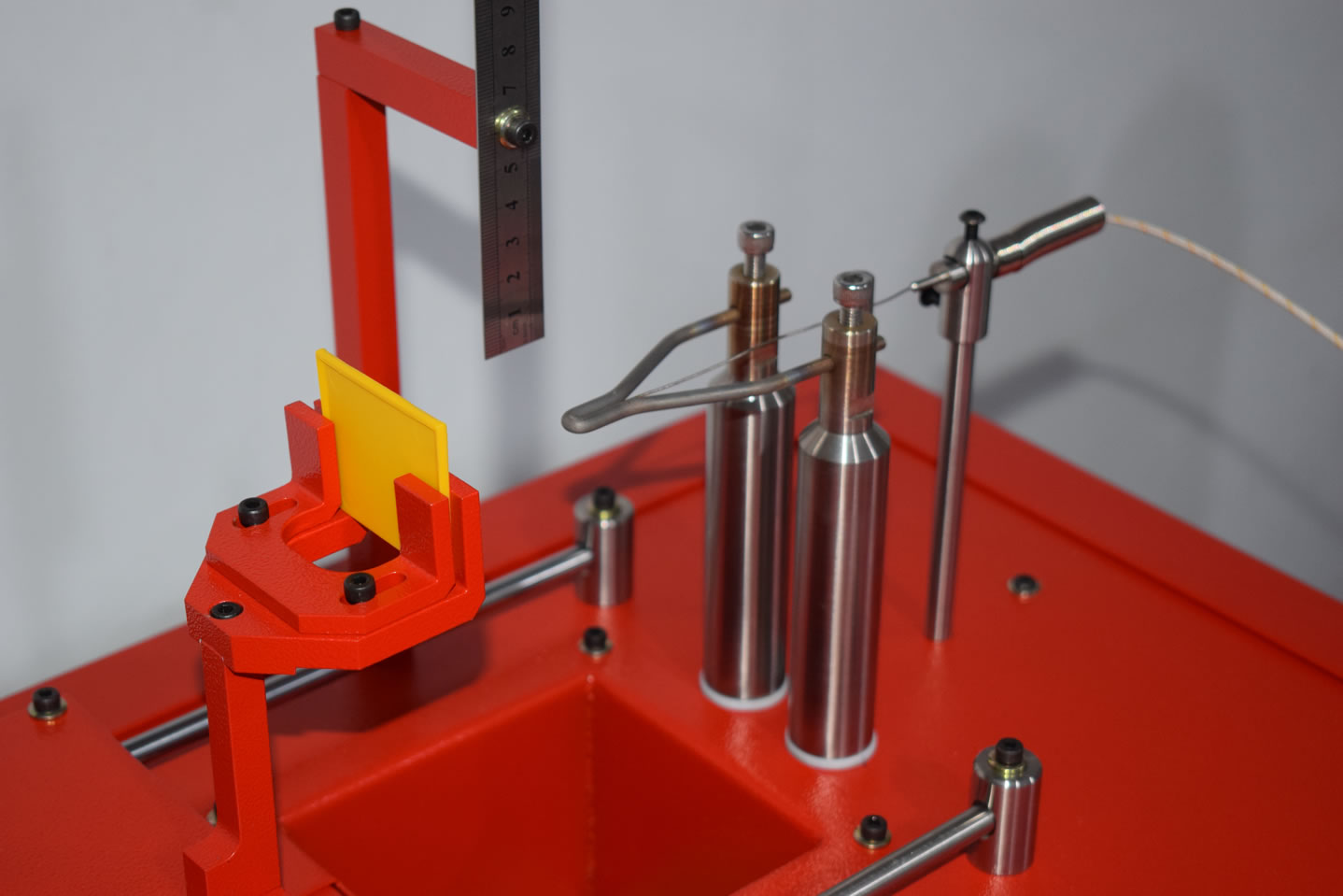 The Glow Wire Tester (EFI 01) has a loop of resistance wire is electrically heated to a specified temperature and the specimen being tested is brought into contact with this heated wire with a defined horizontal loading.