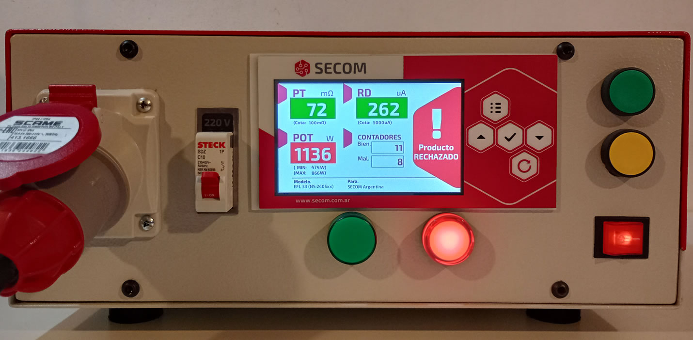 Equipment developed and manufactured in ARGENTINA, to test Class I appliances (appliances) and Class II appliances (appliances).