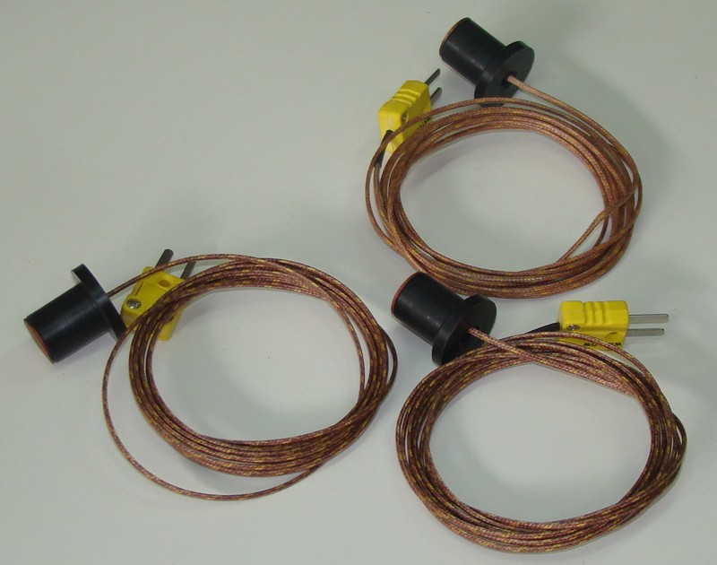 Thermocouples of measurement is of curved type K, mounted on a ceramic case and in its end of measurement they have a copper disc of Ø15 mm and 1 mm of thickness. They consist of a compensated cable of variable length (according to the necessity) with a compensated connector male, mini type to accede directly to the measuring instrument.