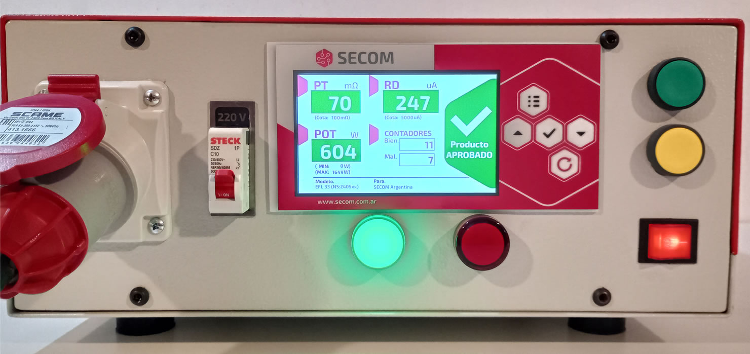Equipment developed and manufactured in ARGENTINA, to test Class I appliances (appliances) and Class II appliances (appliances).